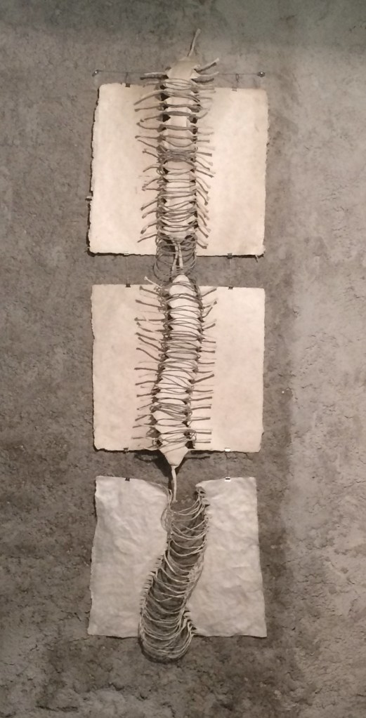 Une création à mi-chemin entre le végétal (fougère/scolopendre) et l’animal (mille-pattes/scolopendre). Une sorte de créature à la colonne vertébrale proéminente, plus ou moins déformée dans toutes les directions (scoliose).