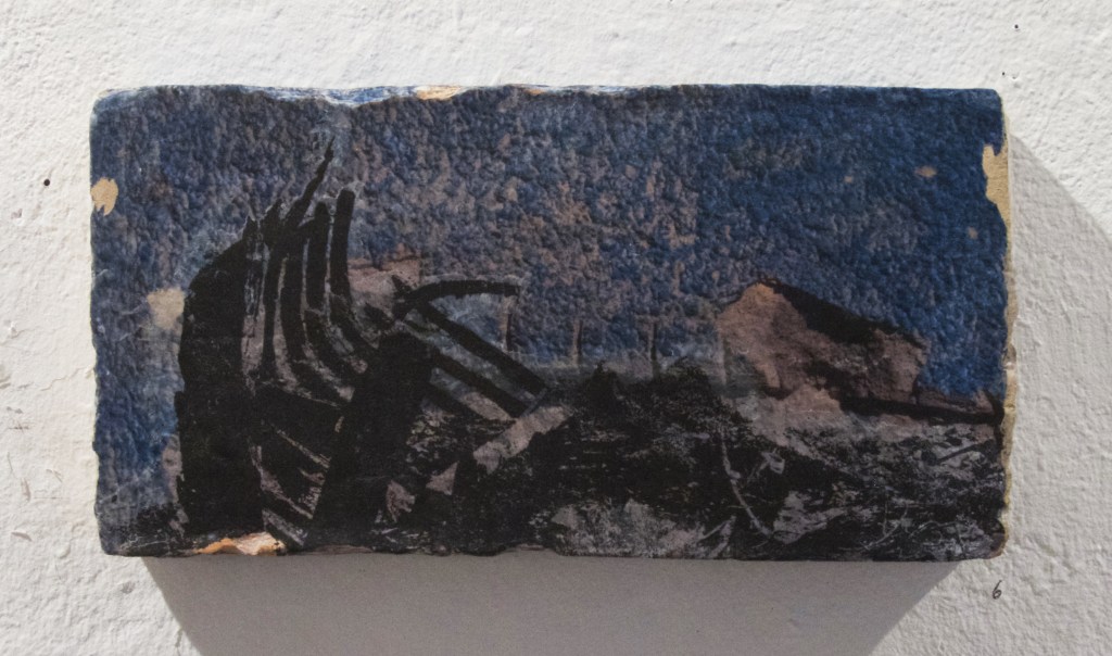Série de 12 objets muraux, transferts d’images sur briques 15×30 cm, 2015